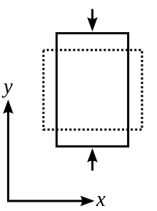 ধরা হল, যদি কোনো একটা গোটা রবারের চোঙের ওপর বল প্ৰয়োগ করা হয়, তবে গোটা চোঙের দৈৰ্ঘ্য বৃদ্ধি হওয়ার সঙ্গে এর ব্যাস বা প্ৰস্থচ্ছেদ হ্ৰাস হবে। যদি চোঙের প্ৰারম্ভিক দৈৰ্ঘ্য অৰ্থাৎ বল প্ৰয়োগ করার পূৰ্বে এর দৈৰ্ঘ্য L হয়, বল প্ৰয়োগের পর এর দৈৰ্ঘ্য হবে L + ΔL যেখানে ΔL হল দৈৰ্ঘ্যের বৃদ্ধির মান। এই ΔL এবং L-এর মাঝের অনুপাতকে বলা হয় দৈৰ্ঘ্য বিকৃতি।